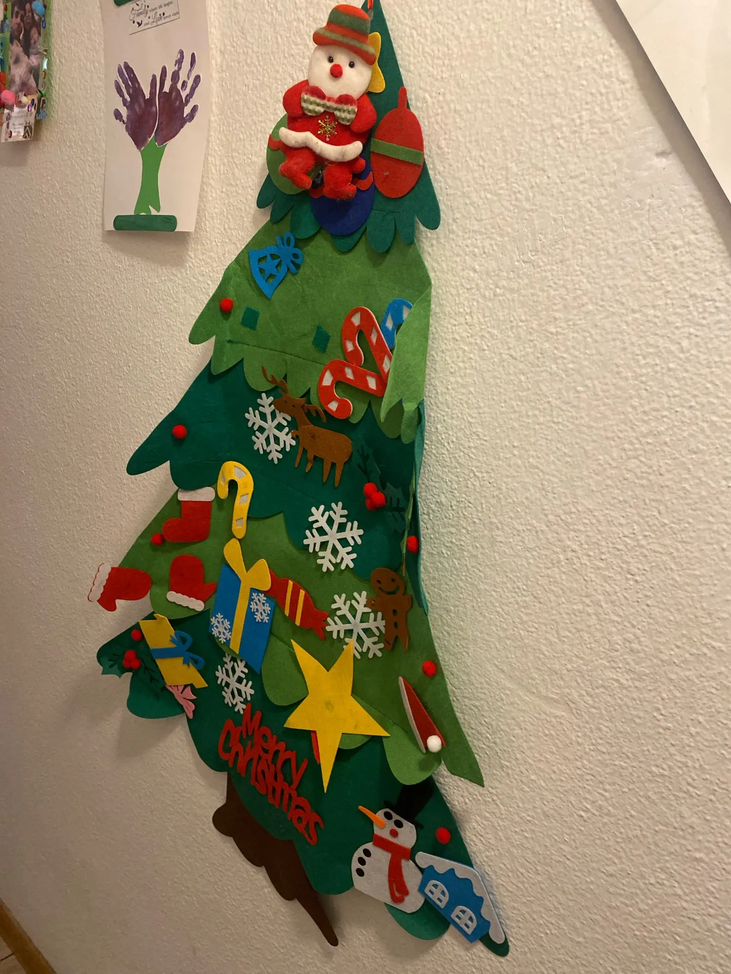 Give them their own Christmas tree to decorate — no glass, no needles, no mess. The soft felt panel hangs on a door or wall in under a minute and turns evenings into calm, screen-free play.